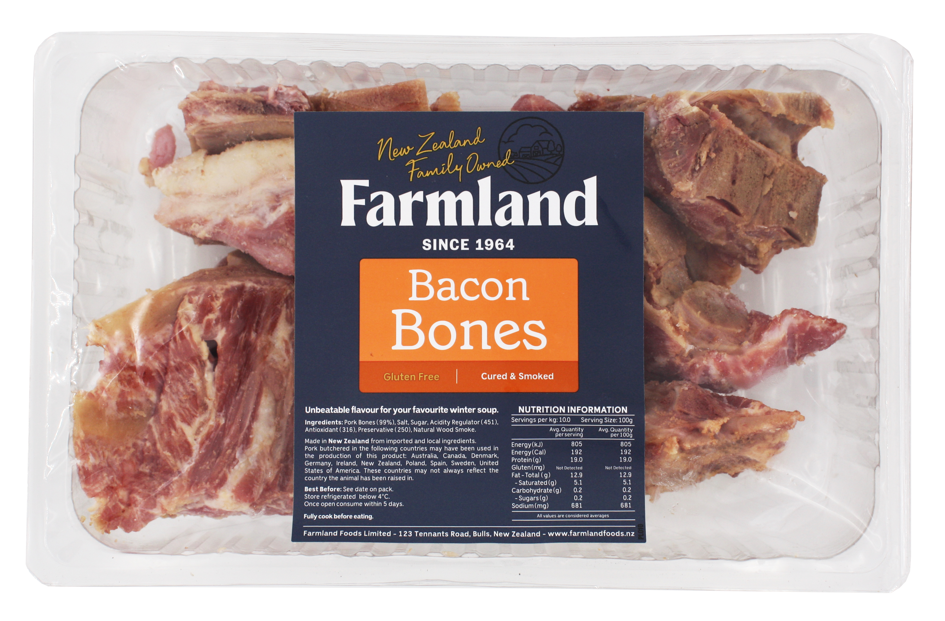 Bacon bones, sugar cured and smoked. The unbeatable flavor for your favorite winter soup.